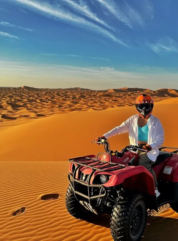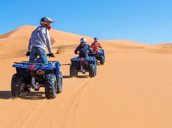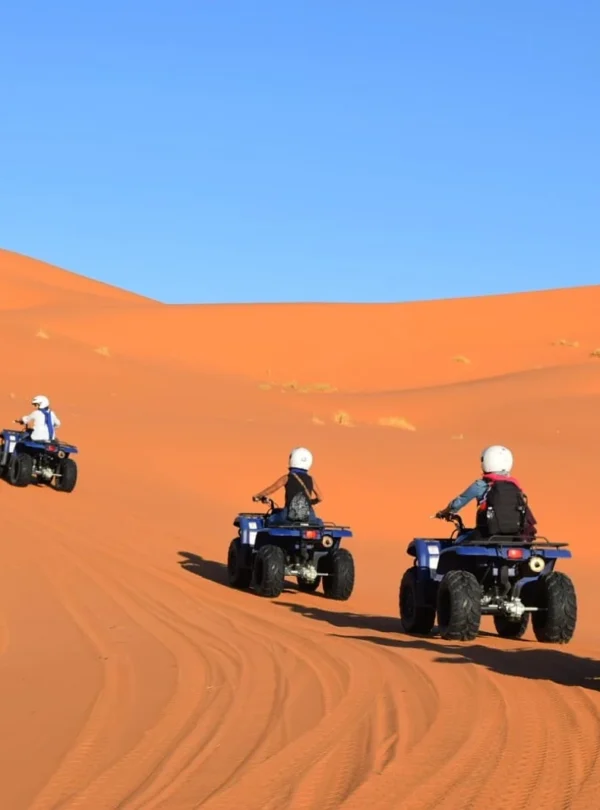 Experience the raw beauty of Morocco’s desert landscapes with our Desert Quad Adventures, an adrenaline-filled activity designed for travelers seeking excitement, exploration, and unforgettable moments. Ride powerful quad bikes across golden dunes, rocky trails, and vast open desert while soaking in panoramic views that only the Moroccan Sahara can offer.