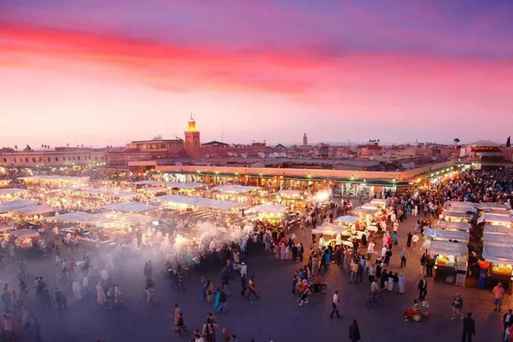A dedicated driver and official guide will be provided for your Marrakech sightseeing tour. The Marrakech City Tour will start with the defining landmark of Marrakech: its 12th-century tiled minaret of the Koutoubia mosque. Then visit Palais Bahia: “A 19th-century palace which boasts a large courtyard, beautiful fountains, tiles, ornate wall-carvings, gardens, and is an excellent spot to find tranquility and marvel at traditional Moroccan craftsmanship”.